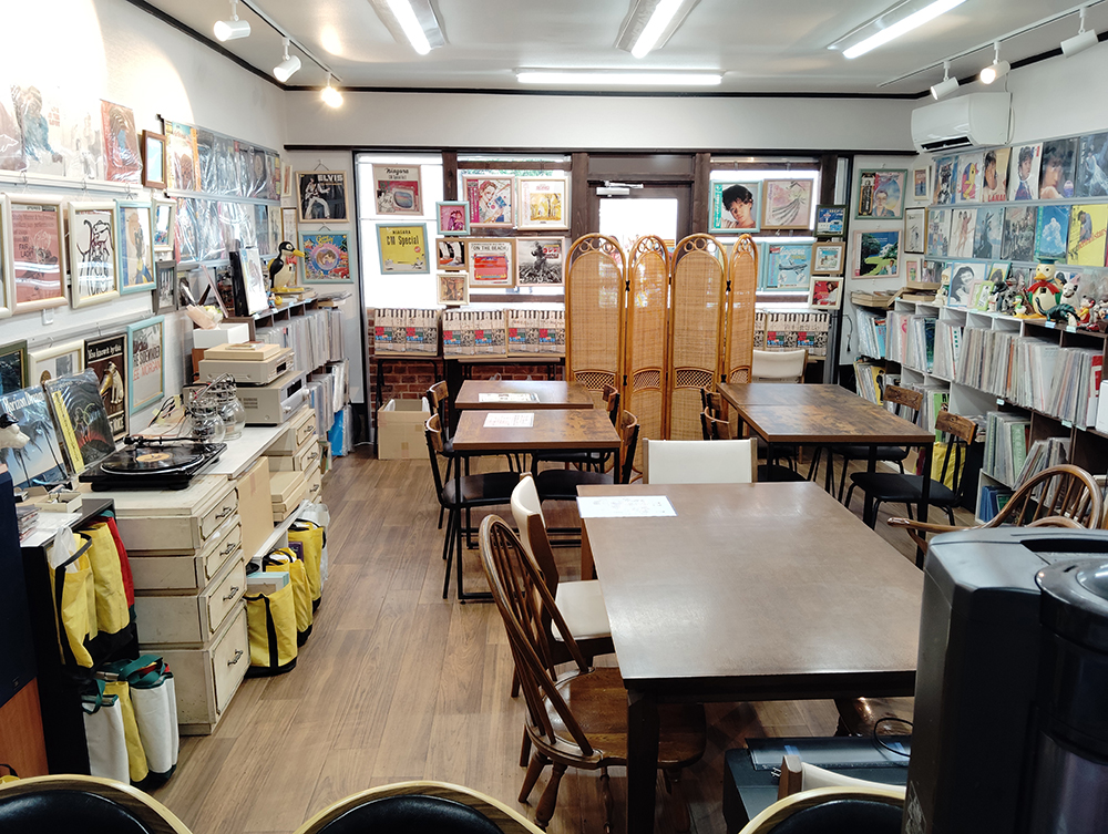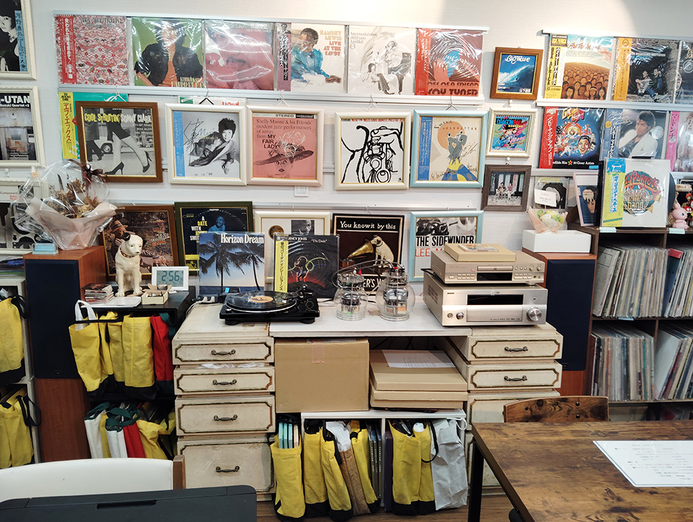 希少なレコードジャケットを常設展示するギャラリーであり、音楽とともに過ごせるカフェであり、そして選りすぐりのレコードが手に入る小さなショップでもあります。